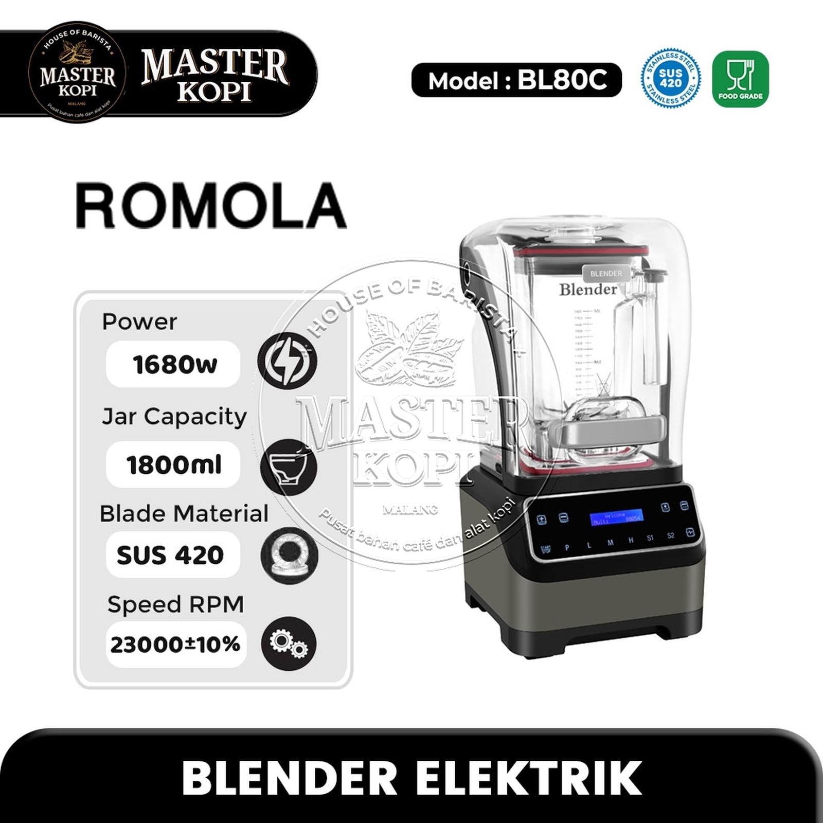 ROMOLA BL80C Smart Blender adalah solusi tepat bagi Anda yang membutuhkan blender cafe bertenaga besar, awet, dan senyap, dengan hasil halus dan konsisten untuk menunjang bisnis minuman Anda.