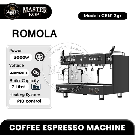Dengan kapasitas boiler besar 7 liter, dual pressure gauge, dan pre-infusion adjustable hingga 0.1 detik, ROMOLA GEN1 2GR merupakan pilihan ideal sebagai mesin kopi espresso komersial.